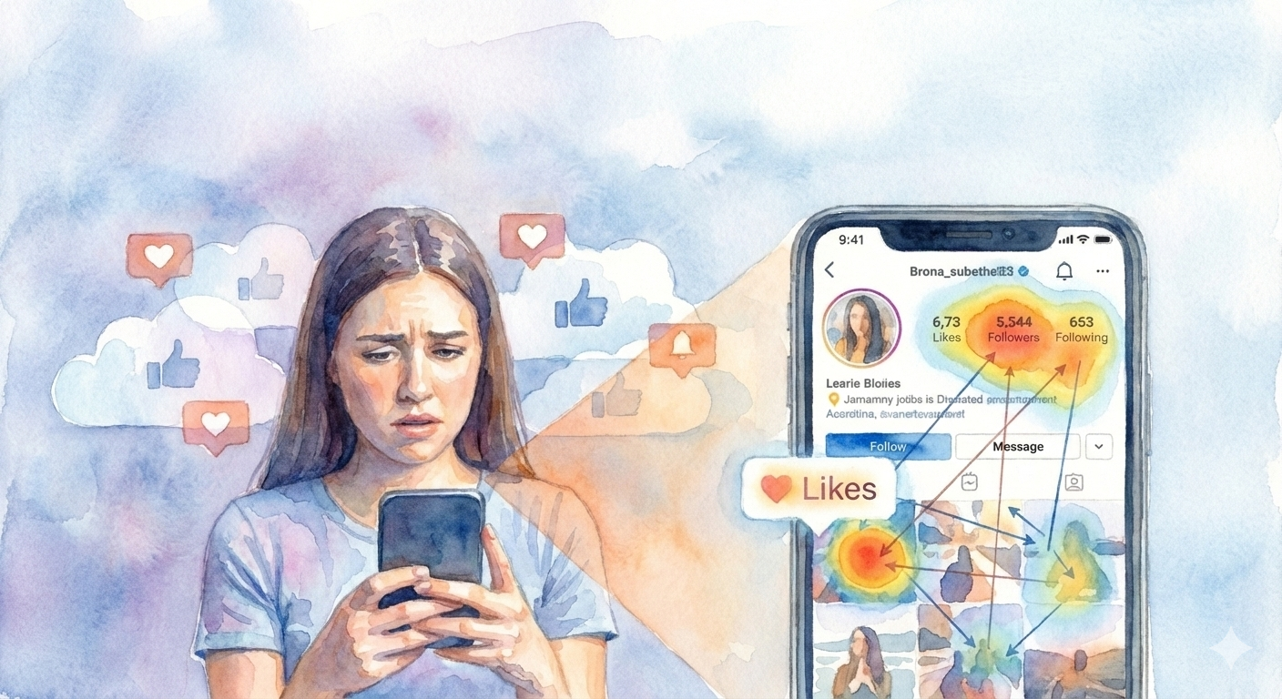 Social media has become a huge part of everyday life for many people, but its constant stream of comparison and evaluation can take a toll on users’ mental health. This study examined how anxious youth pay attention to social media cues, such as likes and posts, to better understand if these platforms can heighten anxiety and how better designs might ease that stress. Instagram, one of the most popular platforms among young people, amplifies social pressures through its focus on photos, likes, and follower counts. This often pushes users—especially young women—to compare themselves to idealized images and to develop insecurities about their appearance or popularity. These metrics act like public scoreboards, making popularity easy to see and compare. Many young people interpret these numbers as judgments of their social worth.